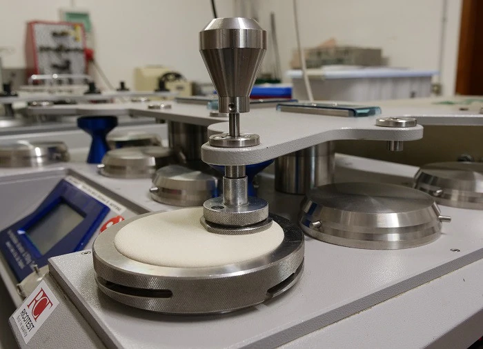 一方、マーチンデール摩耗試験は、インナーライニングの耐摩耗性を試験します。